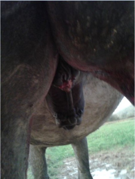 Il est un tout petit peu gonflé, et encore juste derrière, le fourreau n'est pas un poil gonflé. Par contre il a mal, il arrête pas de tourner en rond, de gratter devant et taper derrière et il essaie de se renifler le fourreau. En plus il fait 18º, grand soleil et forcément il ya plein de mouches