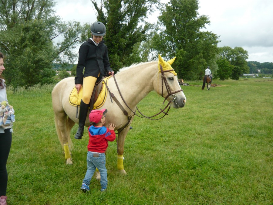 J'ai Sophie (1m65 et 50 kg) qui continue de monter Qualista (1m30) de temps en temps, elle l'aime trop, mais elle passe la main tout doucement à sa petite soeur. Aujourd'hui elle a monté Cachemire et c'est la petite qui a monté Quali par exemple