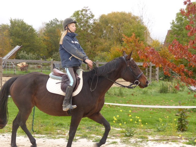 Le problème n'est pas la jument qui n'est pas vicieuse et sur qui je peux mettre ma petite dernière (bon j'avais mis le releveur avec alliance pour être sûre qu'elle ait du frein), mais c'est moi qui ne veut pas lui demander ce qu'elle ne peut pas faire.