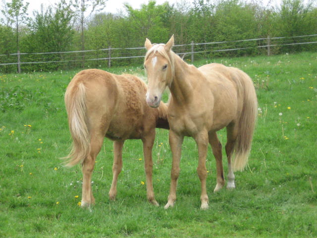 merci Barbara , mais c'est tout simple , j'aime les chevaux de sport , j'ai toujours aimé la robe palomino (soit dit en passant on continue de parler d'effet de mode , mais cet effet de mode , il dure depuis 20 ans en fait !!) , et j'ai découvert grâce à Maya il y a 18 ans (déjà ...) la race crème avec son mental si sympathique , j'ai donc logiquement cherché aussi sec à faire naître des petits palo de "sport" ( sans ambition de haut niveau évidemment , ce sont de jolis chevaux d'amateur ) qui puissent faire le bonheur de leurs futurs proprios , après avoir fait le mien dans leur jeune âge