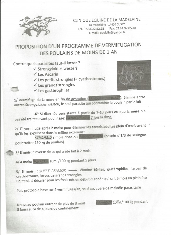 Je ne vois pas l'intérêt de donner un strongid sur un poulain si jeune car le strongid élimine uniquement les adultes, et non pas les larves. Or sur un poulain si jeune, les oeufs n'ont pas eu le temps de se transformer en larve puis en adulte