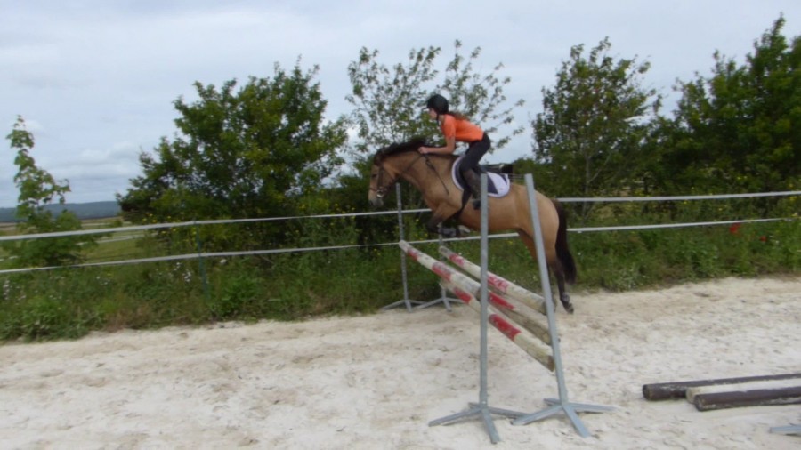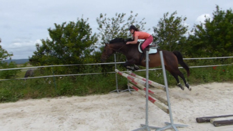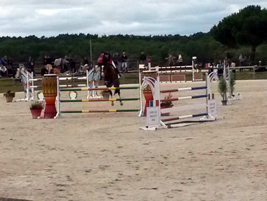 Il y avait 1 mètre pour Alfa et 90 cm pour Cachemire. C'était la première fois qu'on mettait ces hauteurs avec leurs cavalières respectives, la première fois que Cache sautait cela montée d'ailleurs. Elles sont jeunes et n'ont pas encore trop d'expérience: on travaille davantage la gymnastique habituellement