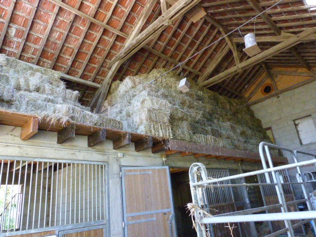 Une petite photo du foin 2016 qui ne tient pas entièrement dans le grenier: nous avons aussi rempli 2 boxes!