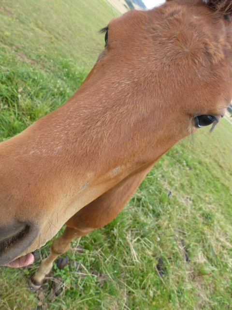 le truc c'est qu'elle n'a pas mal et qu'elle ne boite pas ( juste un défaut d'amplitude au trot à main gauche dans le sol profond)... du coup elle se demande bien pourquoi elle est bouclée au box alors que les copains l'appelle depuis le pré...