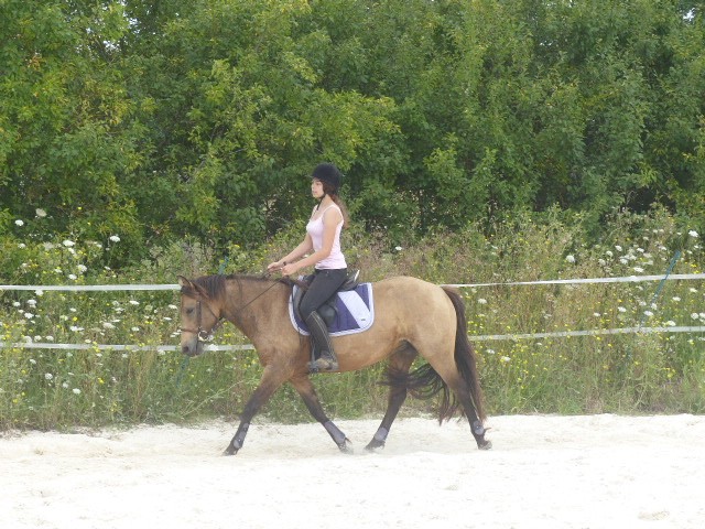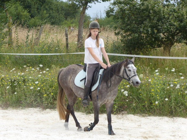 Concernant Nini, oui, il a un peu décollé. Je pense qu'entre la chaleur et les bestioles + le fait de beaucoup marcher, il use un peu son énergie. D'ailleurs la gérante m'en a reparlé ce week-end et elle pense, comme moi, qu'un petit complément ne serait pas de trop histoire qu'il ne perde pas plus. Pour elle ce n'est pas catastrophique mais mieux vaut prévenir que guérir et s'y prendre tôt avant que ce soit trop dur à rattraper. On a donc recommencé à lui filer une gamelle de grain par jour depuis dimanche mais, à part sa fonte, il va bien. Je l'ai monté dimanche sur le plat et ce n'était que du bonheur (certaines ont du voir les photos sur fb), il était bien dispo et n'a rien oublié