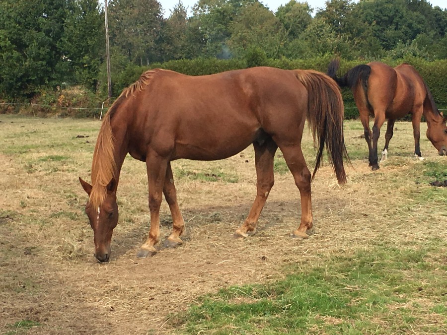 - ALFA SF par Poor Boy x Enchanteur AA, 15 ans, 1m63, dite JUNIOR puisqu'elle a le même nom que sa mère. Testée saine à la PSSM.