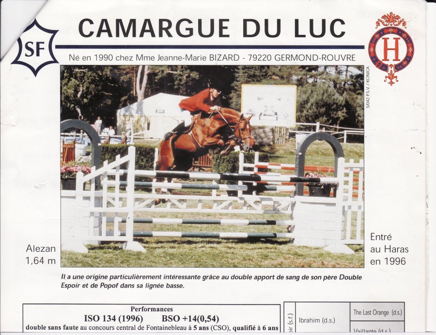 ncaar Disons qu'avec ma jument OC et sa maman ONC il me faut un stud-book autorisé dans la reconstitution de l'Anglo-Normand pour le produit (DSA)... Camargue du Luc, le papa d'Olympe a été labelisé SF Originel, c'est un bon point, mais du coté maman, il y a du travail sur 4 générations à faire puisque je n'ai pas de preuve qu'Orphée était bien TF de naissance... Un nouveau challenge pour moi... mes 2 reproducteurs Castillonnais étant bien notés à l'élevage, y'a plus qu'à faire des petits... La carrière de Bizet en dressage est entre les mains de ma monitrice...