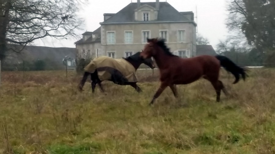 Oui le pré n'est pas la panacée non plus: je les ai mis 3 heures cet après-midi et Orla a passé son temps les pieds dans la boue à attendre pour rentrer. Il n'y a que quand j'ai rentré la copine qu'elle a démarré plein pot (top après être restée à l'arrêt un long moment dans le froid....) et j'ai eu droit à un retour au box au trot en croise pattes avec la queue sur le dos et en ronflant alors que ça glisse à mort, le truc juste bon à se ramasser.... Pour cela que je préfère le rond qui est plus praticable pour moi comme pour eux et où on ne pète pas les plombs à tout bout de champ....