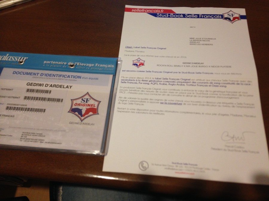 Il y a peut être une semaine j'ai reçu un courrier du stud-book en m'informant qu'elles est reconnu comme SFO avec une vignette a coller à l'emplacement du logo SF.