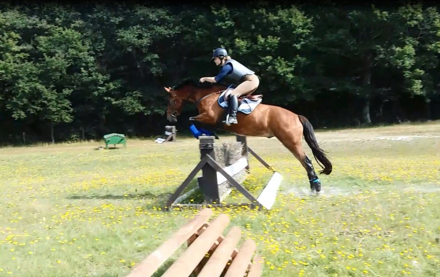2e cours de cross pour petit poney pour preparer sa premiere sortie concours fin aout en club3 cce avec sa nouvelle proprietaire qui n'est autre que la jeune fille qui le monte depuis octobre , ça lui fendait le coeur de le voir partir alors elle l'a acheté!
