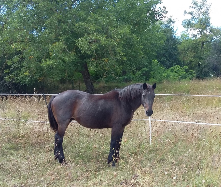 - ALFA SF par Poor Boy x Enchanteur AA, 15 ans, 1m63, dite JUNIOR puisqu'elle a le même nom que sa mère. Testée saine à la PSSM.