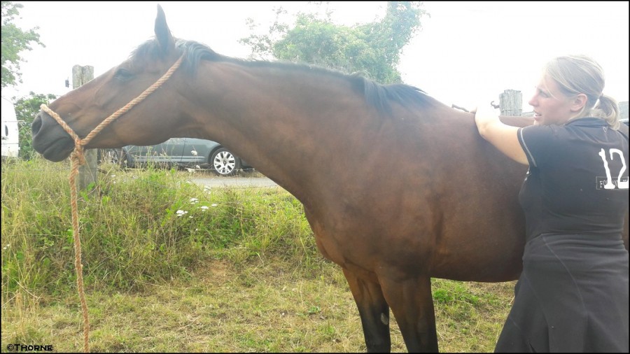 Pas vraiment de réaction sur Rachel qui avait des blocages un peu partout malgré l'ostéo, par contre j'avais été bluffée aussi par Ebène qui s'est mise à ruer quand Aurore a touché le point des ovaires.