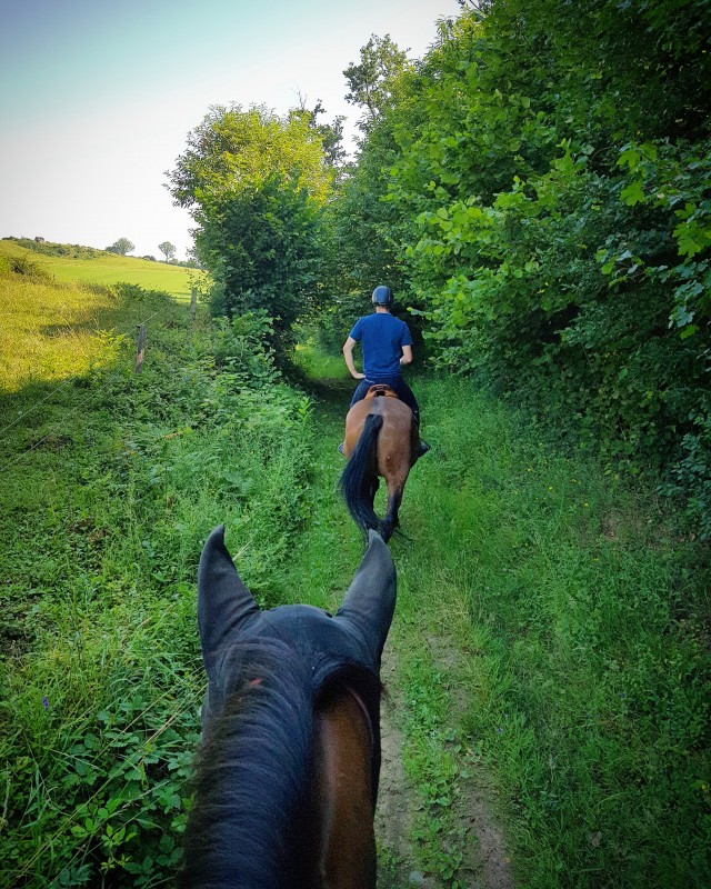 Aujourd'hui, j'ai refais mon 1er galop en carrière depuis mon opération du genou puis, comme il faisait beau, on en a profité pour aller faire notre 1ère petite balade autour de la maison !! Les chevaux ont été adorables, exemplaires même, de vrais amours ^^