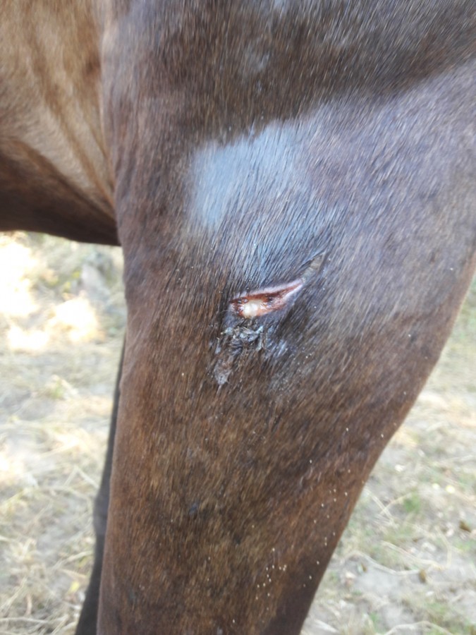 j'ai soigné une ateinte en couronne avec, puis un énorme abcès à l'encolure, une plaie ouverte sur le memlbre juste sous l'épaule.