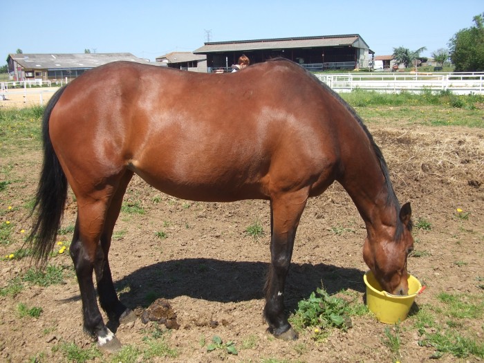 - ALFA SF par Poor Boy x Enchanteur AA, 15 ans, 1m63, dite JUNIOR puisqu'elle a le même nom que sa mère. Testée saine à la PSSM.