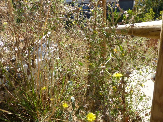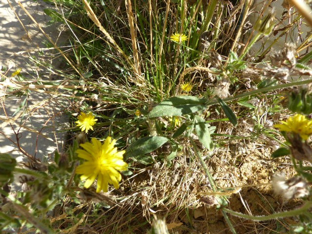J'ai essayé de vous faire des photos de ce qu'ils mangent par contre: mêmes fleurs, mêmes feuilles rugueuses mais la plante fait 1m de haut… Je ne sais pas si c'est de la porcelle aussi mais celle-là n'est pas enracinée!