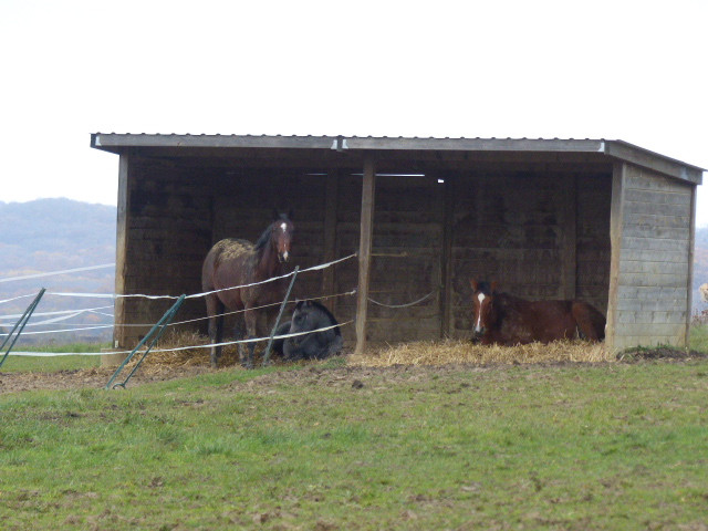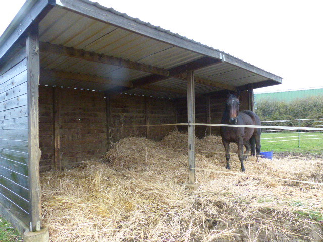 Des nouvelles des abris: 10 jours après avoir paillé le deuxième, le plus humide, il reste au top! Les chevaux apprécient toujours autant