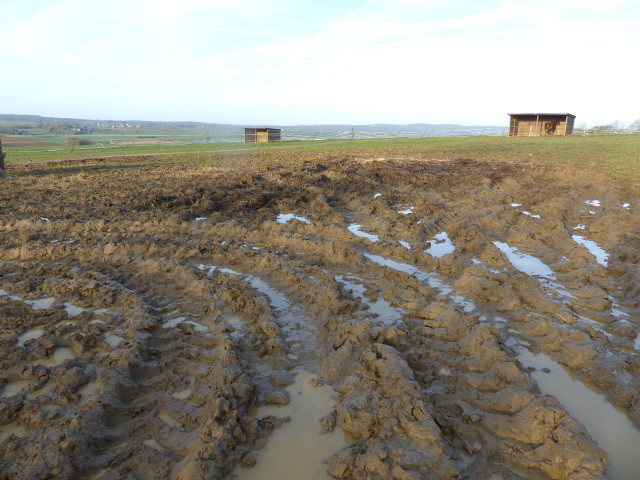 Nous on n'avait pas hersé l'année dernière. Cette année, en revanche, je pense qu'on remettra un coup de propre quand même car là c'est quand même bien défoncé... Après ce sont des pâtures qu'on n'utilise pas aux beaux jours donc elles vont avoir le temps de se reposer