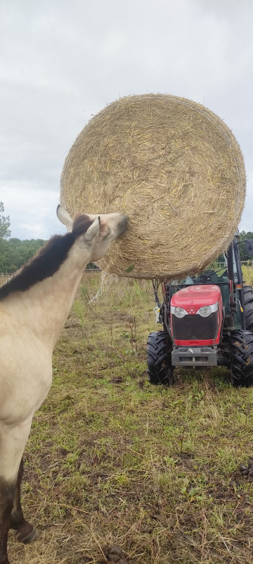 Et j'ai des zozos qui peuvent se mettre sous la balle aussi, tellement ils sont en transe dès que le tracteur arrive et cherchent à grimper dessus....
