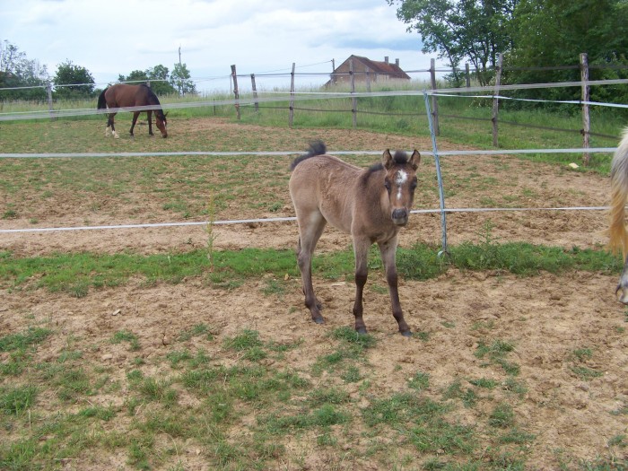 Il est avec Quali et Cabriole, mais quand la pitchoune a son 1/4 d'heure de folie, il a peur et il se planque dans un coin au lieu de courrir avec elle...