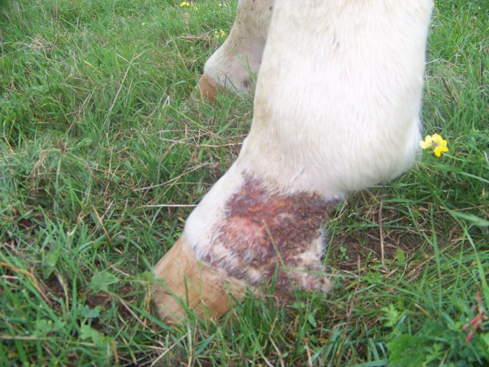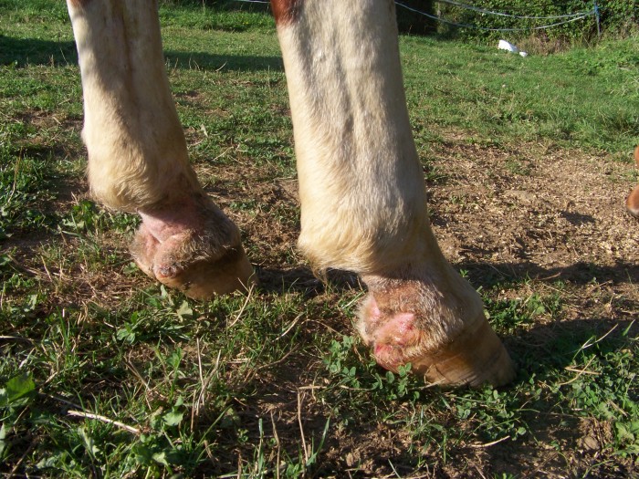 Les croûtes sont parties, mais ça reste sanguinolent. Je me demande si ce n'est pas plutôt de la gale de boue, parce que ce qu'elle avait sur le nez est parti de suite avec la graisse à traire, mais là c'est beaucoup plus long. Je crois que j'ai fait le tour de beaucoup de pommades et je ne sais plus trop quoi mettre...