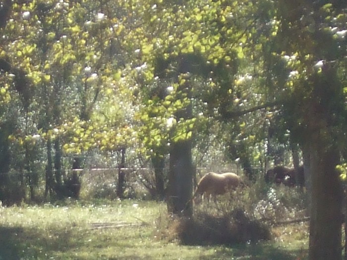 donc voici les juments au fond de leur pré à mon arrivée ( mon zoom est pas top)