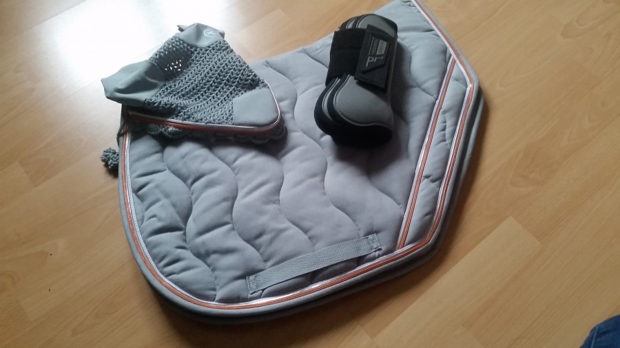 J'ai finalement acheté le bonnet qui va avec le tapis et les guetres offerts par mes copines d'amour, kiki va etre tout beau en concours !