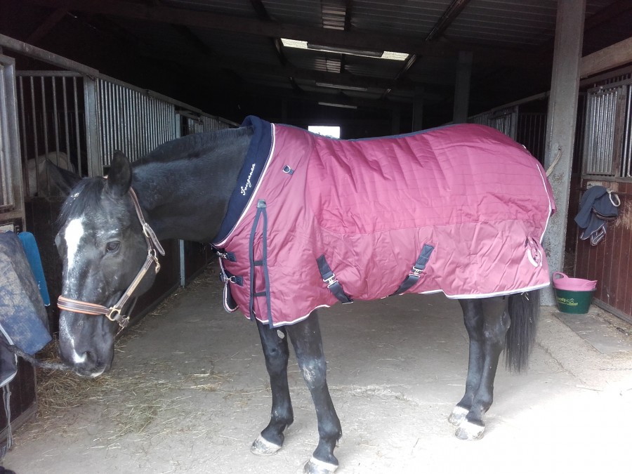 - Tapis Equitheme "Royal" acheté à la sellerie BR equitation à Pirey (25). Taille cheval, marron avec cordelette et écusson doré. Je ne sais pas vraiment le prix (cadeau ^^) mais sur le site de équitheme ils le mettent à 55€ environ.