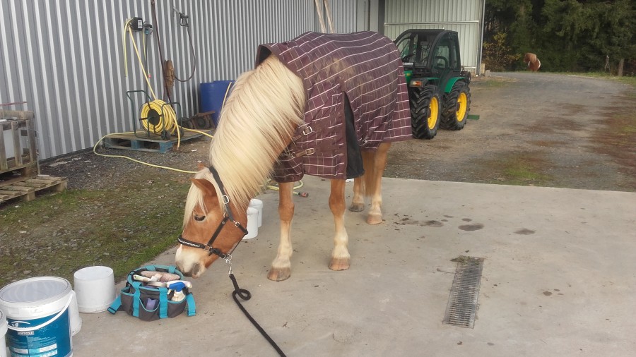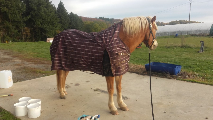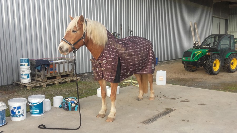 vu que j'était en sellerie, j'en ai profiter pour passer commande d'une paire de cloche en simii cuir marron avec de la moumoute blanche, elles sont canon