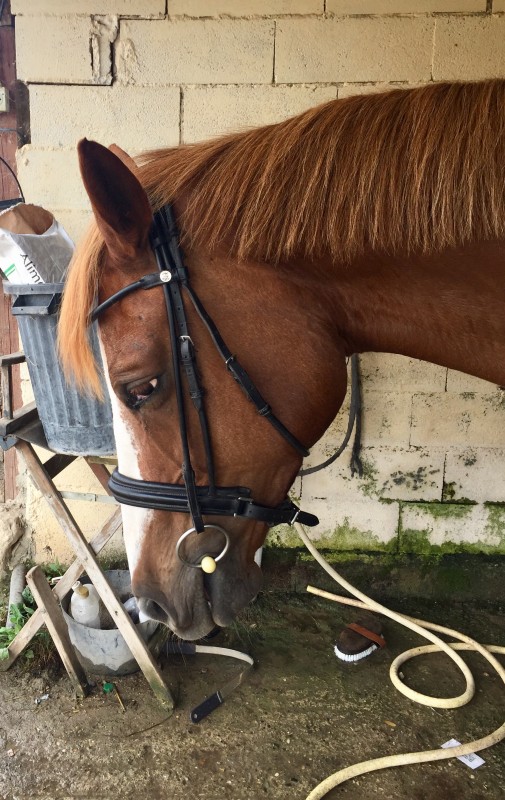 Un howlett chez esprit equitation vu que loulou travaille 10x mieux avec ça qu'avec un gogue et vu que je n'ai pas encore assez de fixité dans ma monte pour le garder rond et tendu pendant une heure je préfère monter avec ça