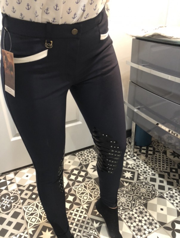 Et j'ai reçu un modèle qui se rapproche du Starlight (bandes blanches, même forme de grip aux genoux) mais sans les strass et avec des poches un peu différentes