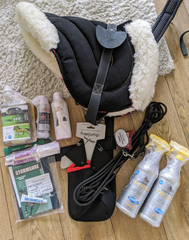 - couverture imperméable Equitheme 200gr pour l'année prochaine (enfin trouvé une qui va pour sa carrure de trait en 150cm)