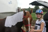 un couvre rein fluo en 145 : sans doute trop petit mais m'en fiche, on sera visible (10,99 euros via sellerie sur le net)