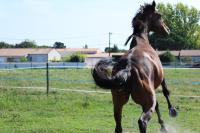 Mon cheval ne sort pas il est au box pour fracture. Où quand il sort c'est uniquement en ma précense pour les soins du jour et une petite ballade en licol.