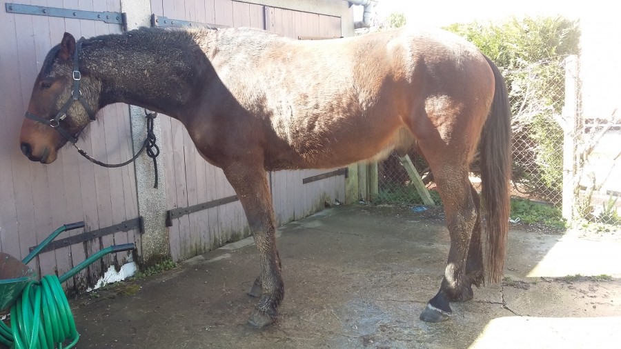 Opri : il a l'air d'avoir un bon dos je trouve. Il a fini de grandir ? Il a l'air d'être assez équilibré avec les hanches à la même hauteur que le garrot. Par contre un petit défaut : il est sale !!