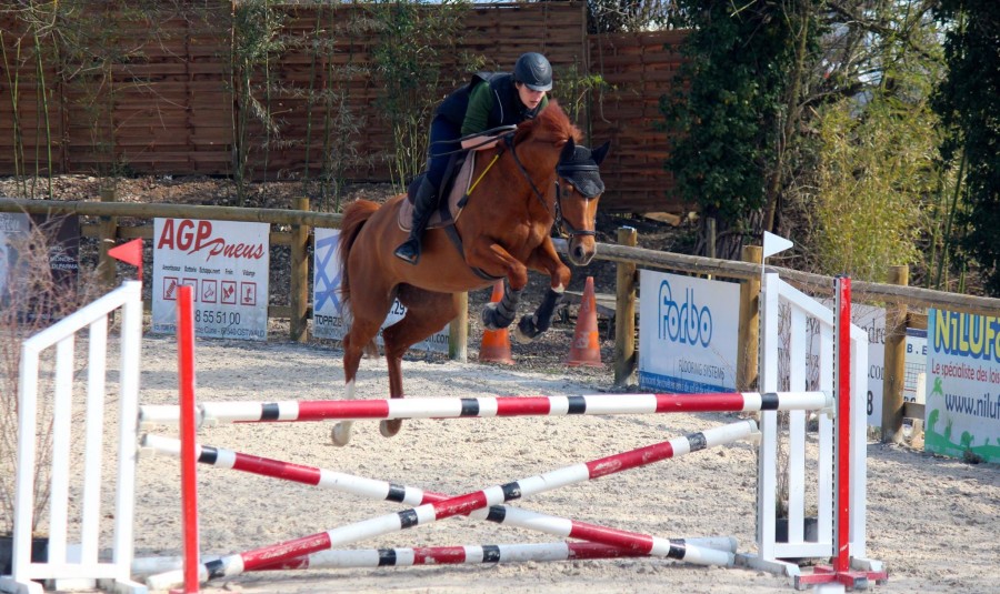 En ce qui concerne le saut, il y a encore beaucoup de travail mais petit à petit on s'en sort mieux et j'arrive même à sauter dans le calme des cavaletti! Je bosse de mon côté le redressement après le saut car je me fais toujours emporter par ses sauts et je la perds (même sur le plat, elle sait qu'elle peut me treuiller et je bascule vers l'avant). Dorénavant je ne saute pas très haut à la maison mais chaque obstacle est travaillé et chaque foulée aussi. Guillaume est très rigoureux et je progresse énormément. Mon mari m'a même sorti "oh c'est drole, on dirait que tu montes comme les cavaliers à la télé"...euh oui chéri, bien sûr Je pense que ce qu'il voulait dire c'est que je n'étais plus un pantin sur mon cheval et que j'étais fixe dessus.