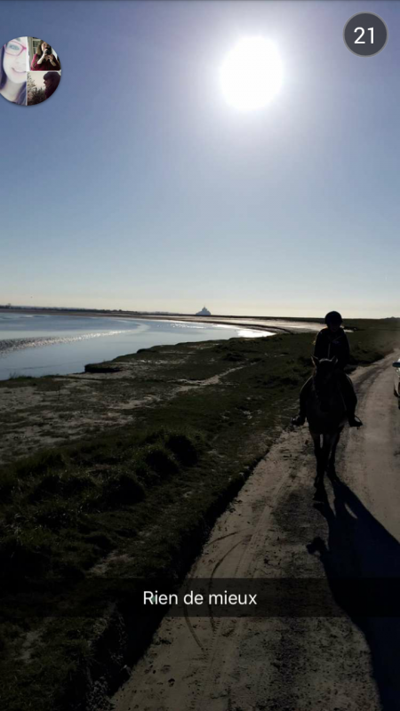 Du coup on a bossé un peu sur un 8 de chiffre et sur des grands cercles sur la partie '' herbue " de la Baie et retour aux écuries , pas usé l'animal
