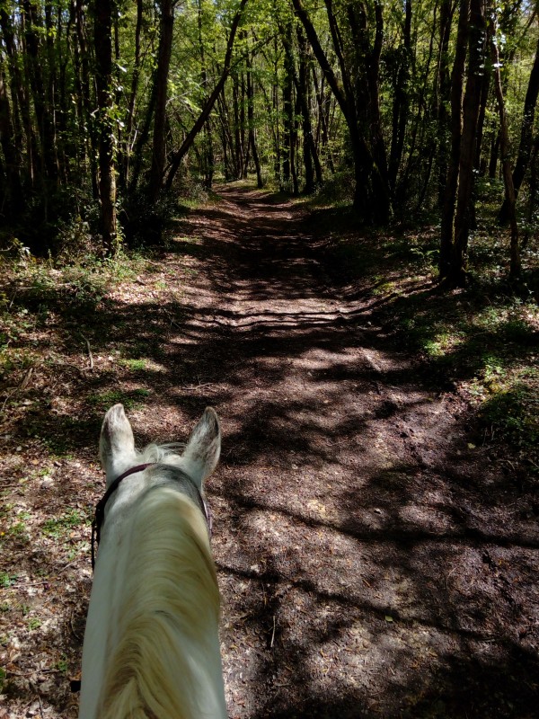 On a fait une séance en carrière où on a travaillé les cessions de nuque: à l'arrêt, puis de temps en temps au pas, puis en demandant plus longtemps. C'était pas mal du tout, il a beaucoup progressé là-dessus!