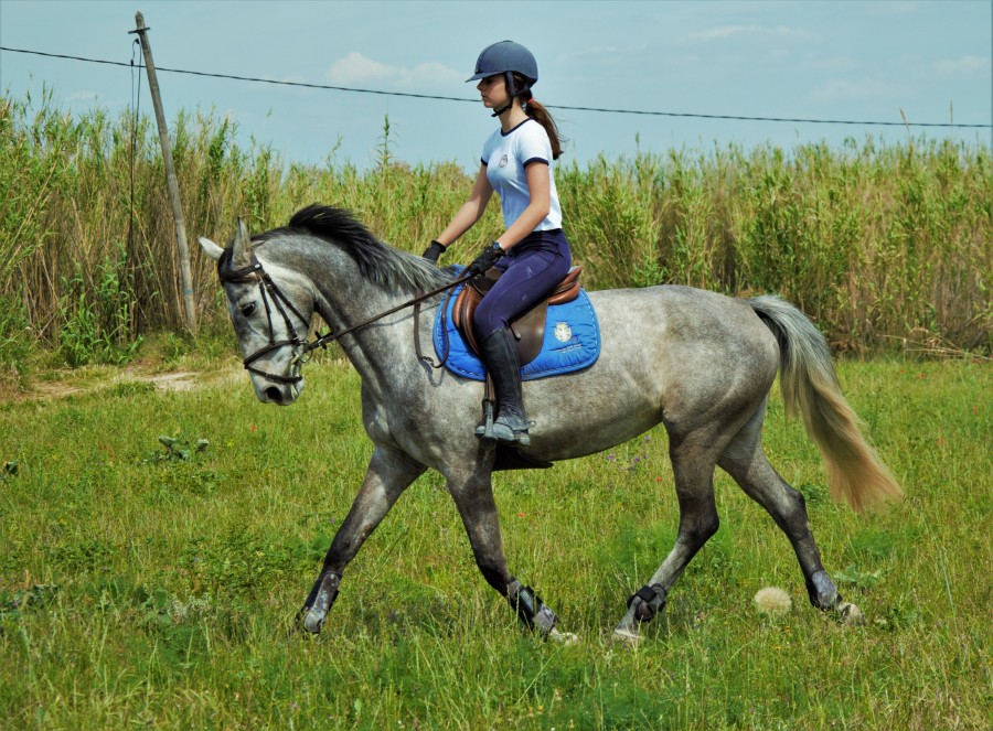 Hier séance de plat avec Tally ! Pas mal, mais ça y est l'été est là chez nous (il faut super chaud...) et du coup Tally recommence a être vite agacé... -_- Déjà il déteste les insectes et la poussière donc il donne souvent des coup de tête vers son poitrail + coup d'antérieur, ce qui fait qu'à chaque fois il est bien, et puis il fait ça et je perd le contact et il se déconcentre. J'ai voulu travaillé au galop mais on a changé de programme car Tally était un peu trop excité et n'arrivait pas a garder un petit galop tranquille. Il était tendu et venait chercher le bout du nez par terre donc bien, mais je n'arrivait pas a l'avoir sur un vrai petit galop de travail. J'ai donc un peu insisté quand même a la fin en le mettant sur un cercle et il m'a donné quelque foulé très bien donc on a laissé là dessus et on est allé marché dehors.