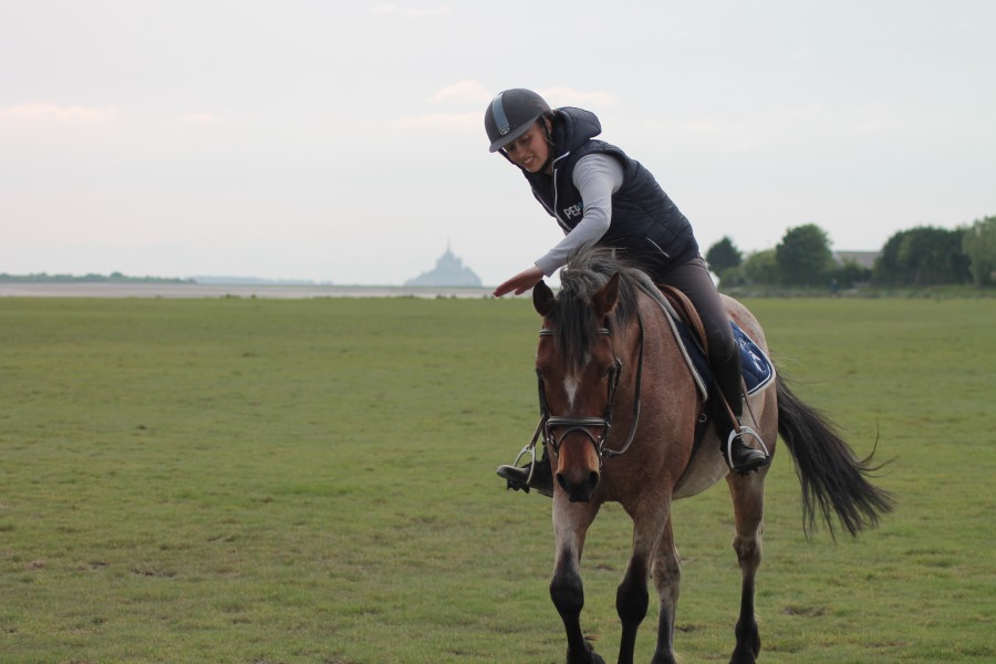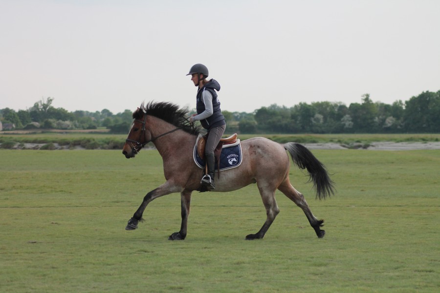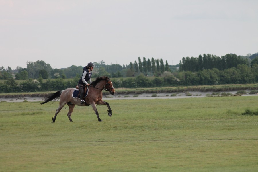 J'ai essayé de bosser les départs au galop depuis le pas, et elle les fait super bien. J'ai eu des petits soucis à main gauche, elle partait à faux, alors que ca faisait super longtemps qu'elle ne me l'avait plus fait, mais je crois qu'elle est hypersensible et elle partait quand je reculais la jambe exterieure, avant que je demande avec la jambe intérieure. Du coup, je n'utilisais quasiment pas ma jambe extérieure et ensuite ca allait bien.