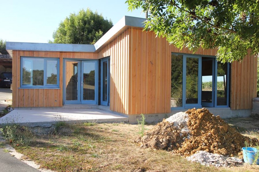 Oui, la maison avance ! Nous sommes que 2 à la faire donc franchement ça prend du temps...On est à l'étape "placo", mais je trouve qu'on s'en sort vraiment bien ! On a finit le bardage il y a 2 semaines.