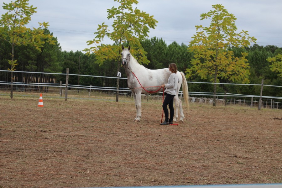 On a revu les bases: être synchronisé avec son cheval. J'avance d'un pas, il avance d'un pas. Je recule d'un pas, il recule d'un pas. On a corsé ça avec une barre au sol, où il fallait juste laisser un seul postérieur d'un côté de la barre...bref, le contrôle des pieds !