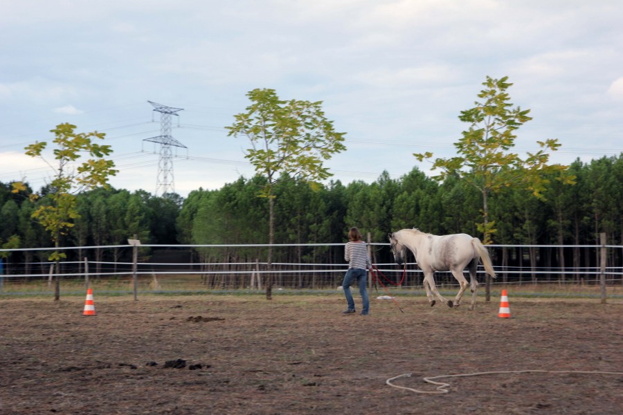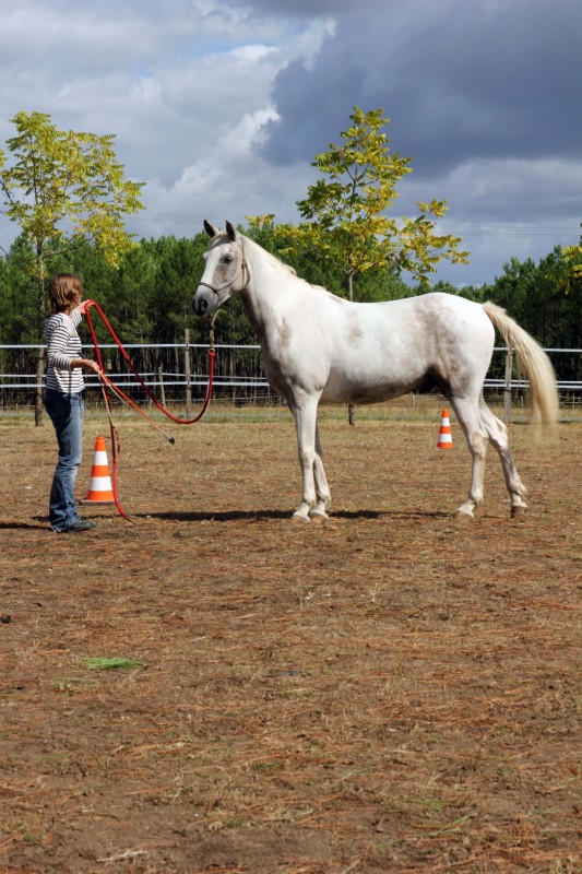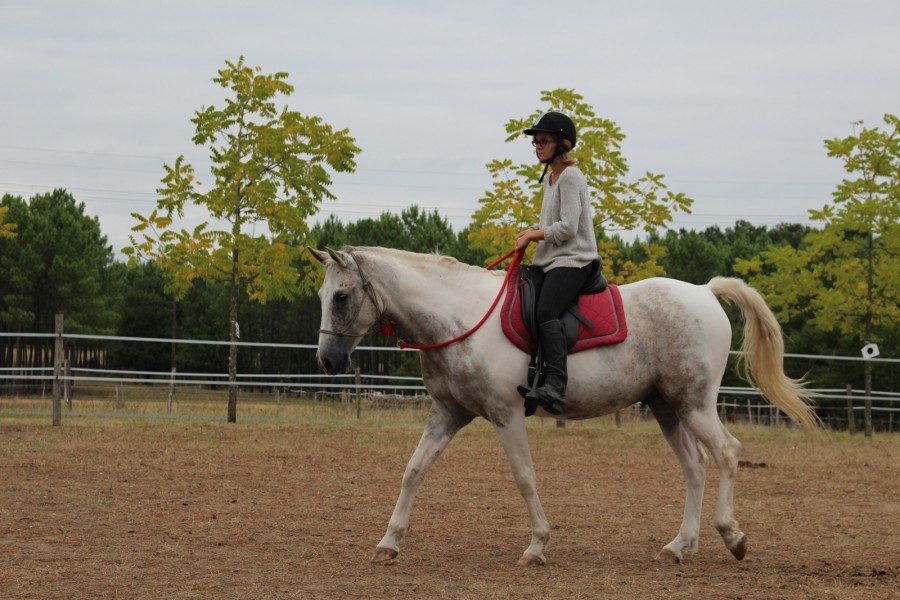 Et puis, j'avais demandé à travailler sur le fait de tenir le galop sur un cercle sans repasser au trot, j'ai beaucoup de mal avec ça. En fait, je protège beaucoup trop Tulsa et dès qu'il repassait au trot je le ramenais vers moi au lieu de lui demander de continuer. Il ne faut pas que j'ai peur d'en demander plus !