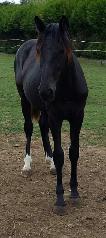 Le début se passe bien, mais je fatigue vite et Anils n'est pas vraiment avec moi. On fait ce qu'on peut. La haie vive arrive très vite après les branches basses, je tourne mais Anils dérape avec les postérieurs et on passe à côté. Le deuxièmes passage est nickel par contre. On enchaîne sur le slalom juste après la réception de la haie. Anils est bien électrique, donc face à la barrière, ça ne le fait pas, elle a du mal à se poser et ronfle dessus. On y arrive très bien à la maison, mais c'est vrai qu'on a pas l'habitude d'enchaîner les dispositifs comme ça. La suite ne se passe pas trop mal, mais impossible de lui faire passer le fossé (qui est plutôt imposant). Elle ne connaît pas ce genre d'obstacles et je n'ai pas le temps de la laisser regarder, donc tant pis ! On retravaillera ça plus tard. Le reste se passe bien, le contre-haut est plus haut que ce que je pensais (par rapport à la photo) et, en plus, il est à la sortie du huit de chiffre à une main. Autant dire que personne n'a eu le temps de relancer, et ils ont tous sauté plus ou moins de pied ferme ^^. Mais ça passe !