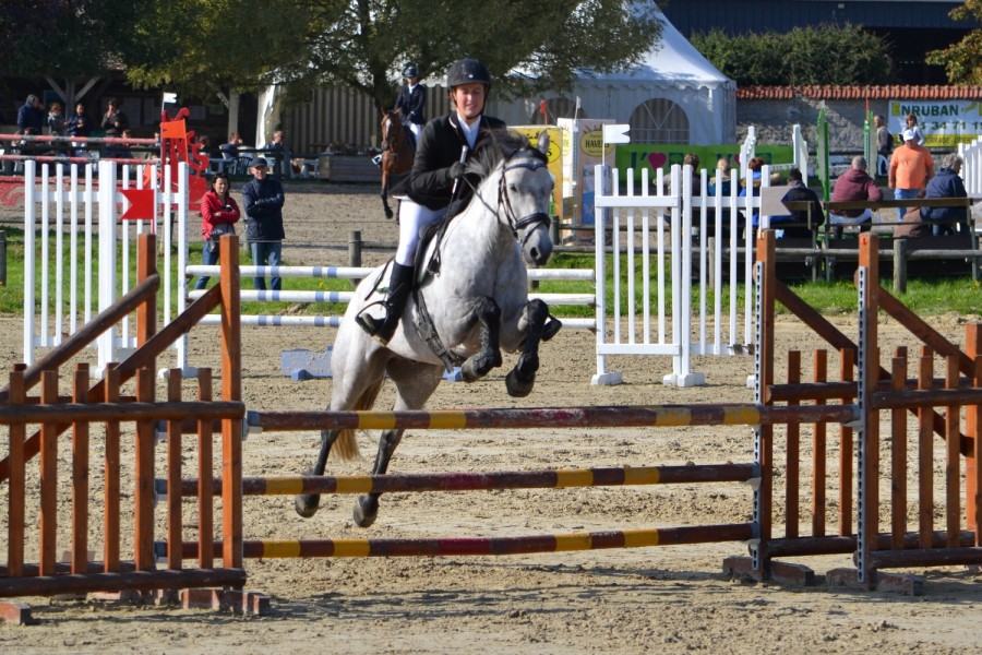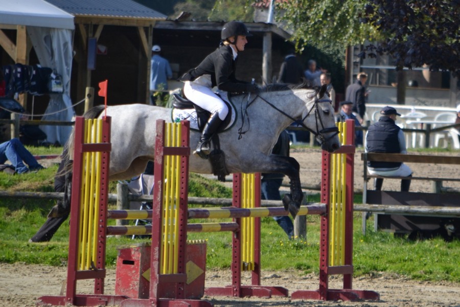 De notre côté nous avons également repris le chemin des concours avec une première club 2 hier soir en indoor. Tour pas simple (même chef de piste que pour les Pro2) avec deux doubles ou il fallait choisir entre rentré dans le pied et faire deux foulées ou avancé pour faire une foulée longue, des demi tour et pas mal de lignes brisées. On sort avec une barre sur la palanque en num 7 je ne ré-équilibre pas assez après le virage et il saute un peu a plat mais apar sa rien à dire, le coach a trouver le tour top et très propre , le poney en équilibre et pour une fois j'ai réussis a prendre des décisions concernant mes contrats de foulées ce que je n'arrivais pas à faire avant donc tout le monde est content.