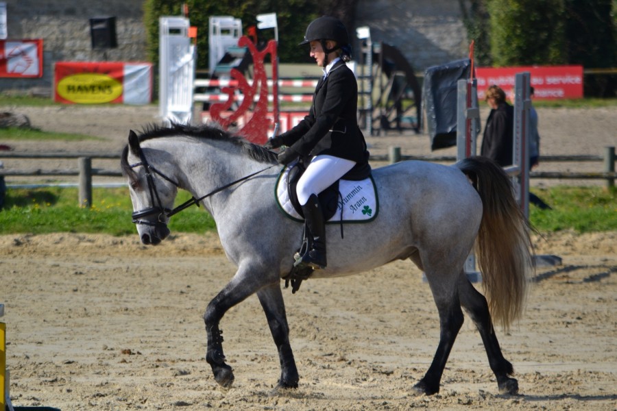 Bon, en club 2 Arann s'est payé a tête... Dérobade sur le 1 puis sur le 7 sans cause apparente. Lui qui est généralement attentif sur les parcours, voilà qu'il se met à s'échapper par les épaules pour ne pas sauter. Je redouble de vigilance après le 7 et tente quand même les options (tant pis si une barre tombe, j'aurais au moins travaillé mes courbes serrées sur ce parcours) et ça passe impeccable, il tourne d'enfer!