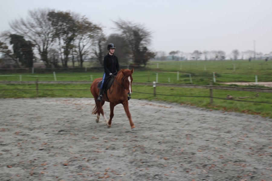 Il est teuteu quand même il fait son ramollo mais dès que je lâche une main pour aller mettre un coup de cravache derrière la jambe il accélère, je pense que je vais essayer de monter avec un stick pour qu'il ne sente pas le "coup" venir, je pourrais solliciter derrière la jambe sans avoir à lâcher les rênes et donc à le prévenir "attention ça va tomber". Je voudrai vraiment qu'il respecte la jambe sans la "menace" de la cravache....