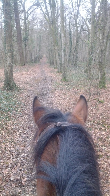 Hier je suis monté dans le manège car carrière trop grasse. Bon on aime pas le manège ni l'un ni l'autre (il est petit et un peu profond....) donc on a fait léger. On a re-bosser les DL au trot aussi: il y a du mieux ! Les DL vers la droite il est vraiment bien : léger, actif, il ne précipite pas et reste bien droit. Vers la gauche c'est plus compliqué encore, il s'ouvre un peu et je sens que c'est plus difficile de passer le postérieur droit sous la masse, il a tendance a précipiter. Bon après il y met de la volonté, je sens que c'est encore dur pour lui mais ça vient !