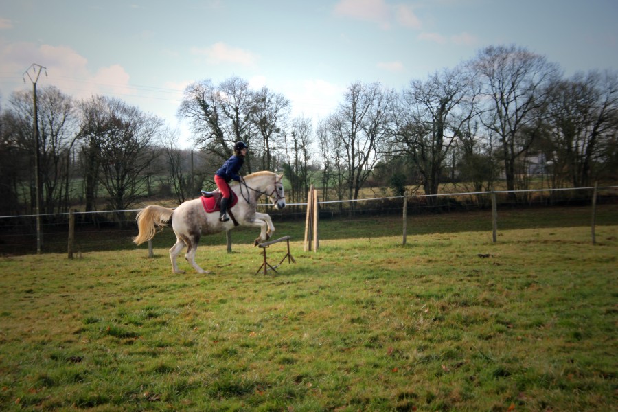 Dimanche, j'ai eu droit à lançade, démarrages intempestifs, coups de dos au galop, arrêt secs.... Bref la totale du poney qui a pas pu se défouler comme il veut...Mais j'aime bien quand il est comme ça, au moins il ose s'exprimer ! Il reste vraiment respectueux et ne cherche pas à me jeter, au contraire, quand il sent que je suis plus trop là, il se calme