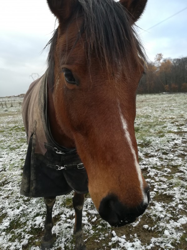 Petite séance en manège pour nous ce matin. Il neigeait ! 1ers flocons de l'année ^^